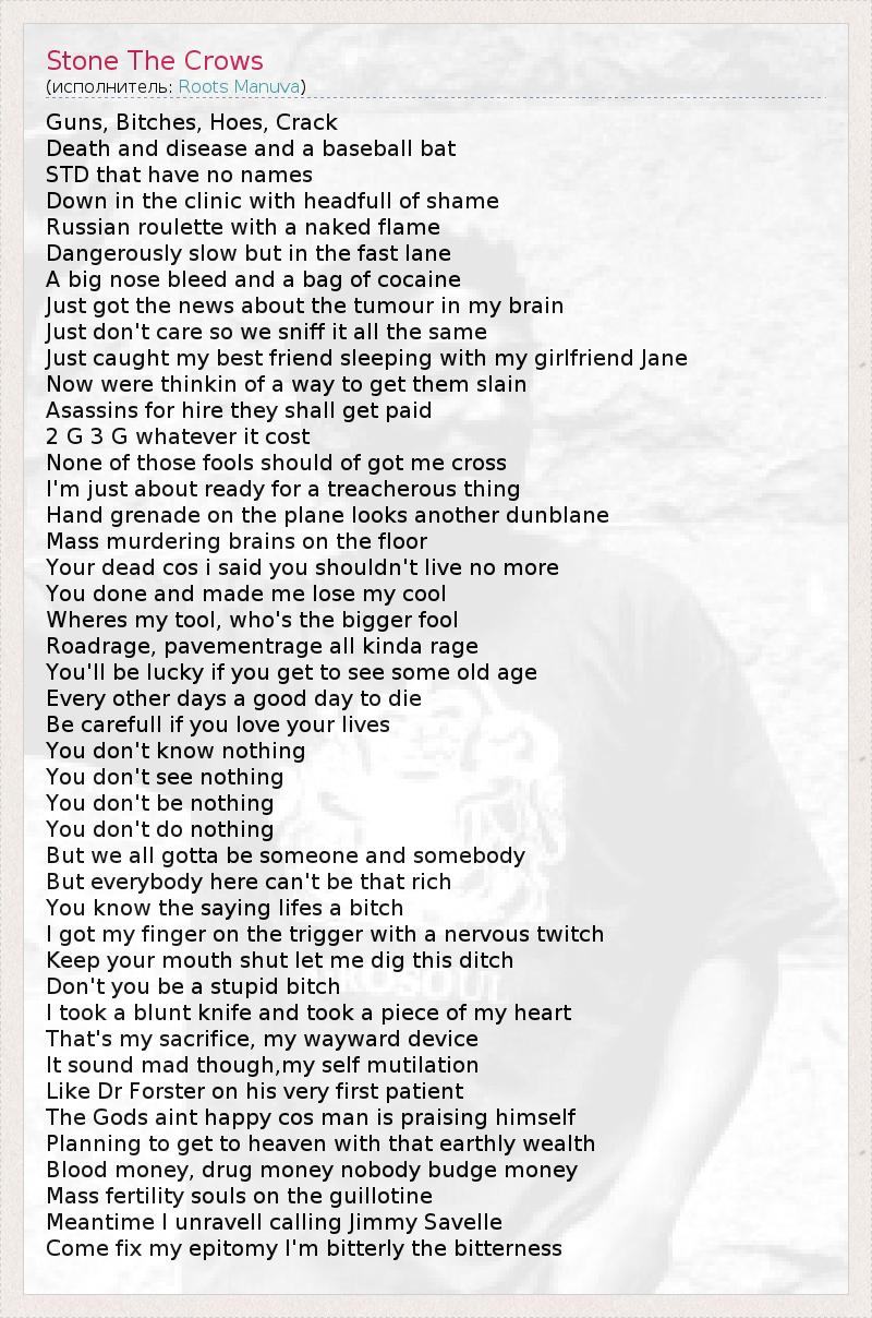 А как ты думаешь, о чем песня "Stone The Crows" ?