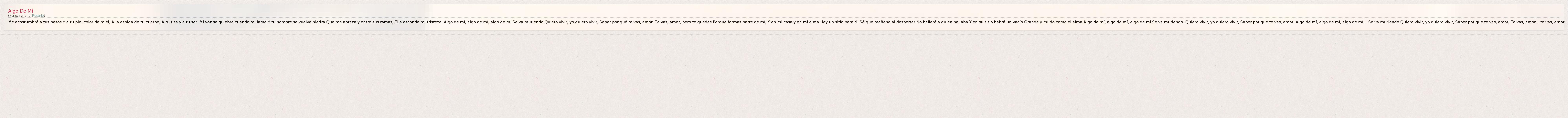 Me acostumbré a tus besos Y a tu piel color de miel, A la espiga de tu cuerpo, A tu risa y a tu ser. Mi voz se quiebra cuando te llamo Y tu nombre se vuelve hiedra Que me abraza y entre sus ramas, Ella esconde mi tristeza. Algo de mí, algo de mí, algo de mí Se va muriendo.Quiero vivir, yo quiero vivir, Saber por qué te vas, amor. Te vas, amor, pero te quedas Porque formas parte de mí, Y en mi casa y en mi alma Hay un sitio para ti. Sé que mañana al despertar No hallaré a quien hallaba Y en su sitio habrá un vacío Grande y mudo como el alma.Algo de mí, algo de mí, algo de mí Se va muriendo. Quiero vivir, yo quiero vivir, Saber por qué te vas, amor. Algo de mí, algo de mí, algo de mí… Se va muriendo.Quiero vivir, yo quiero vivir, Saber por qué te vas, amor, Te vas, amor... te vas, amor...