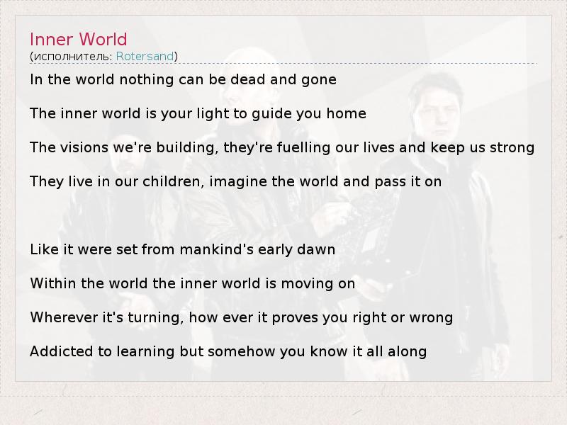 Это интересно:Когда в сентябре 2002 года Rasc и Gun решили основать Rotersand, они уже хорошо знали друг друга. В прошлом их пути не раз пересекались, когда они сотрудничали с такими группами The Fair Sex, 1am and Warm. Возможно, именно это сотрудничество сподвигло их на создание собственного проекта на арене электронной музыки: энергичного и вдумчивого, современного и в то же время «на все времена». Энергичное и трогательное... продолжение