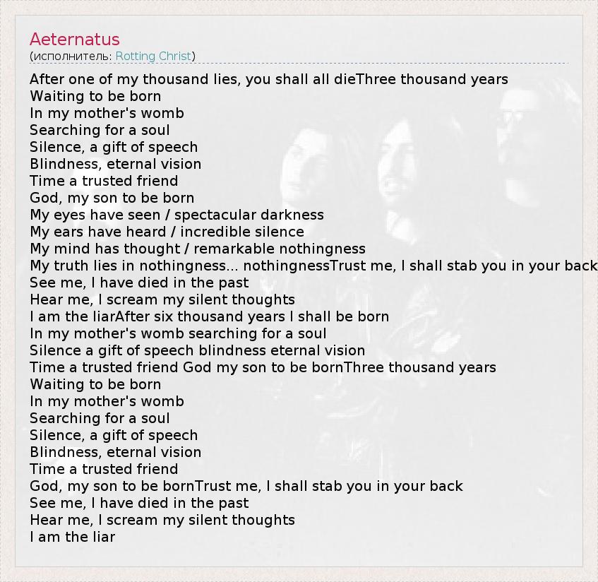 А как ты думаешь, о чем песня "Aeternatus" ?