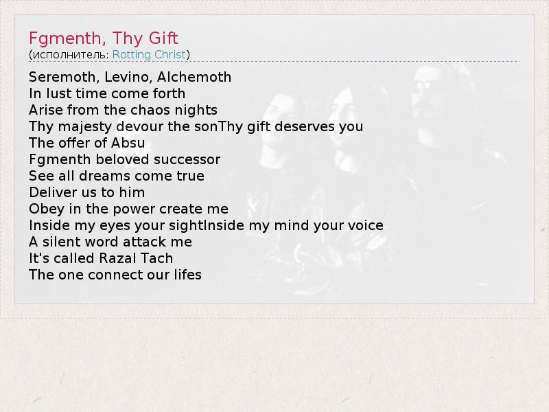 А как ты думаешь, о чем песня "Fgmenth, Thy Gift" ?