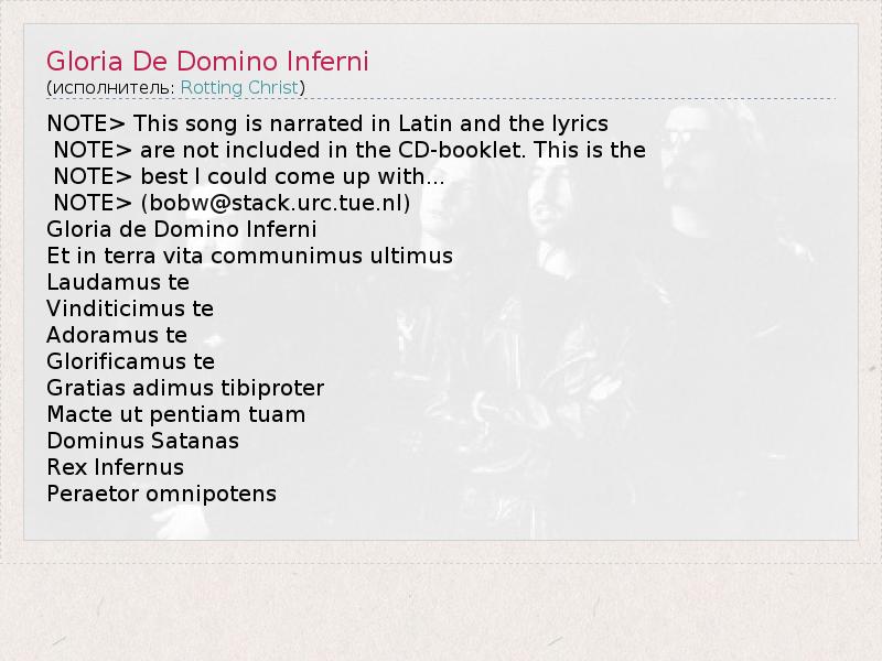 А как ты думаешь, о чем песня "Gloria De Domino Inferni" ?