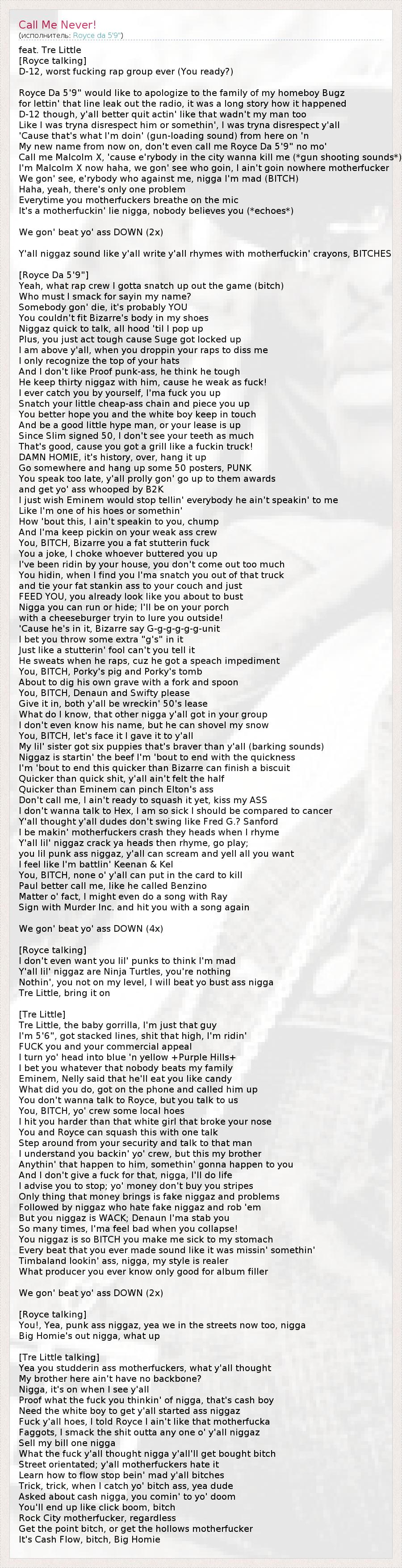 My new name from now on, don't even call me Royce Da 5'9" no mo'