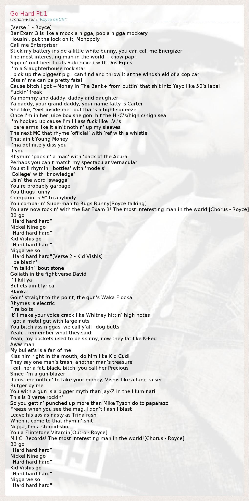 You are now rockin' with the Bar Exam 3! The most interesting man in the world.[Chorus - Royce]