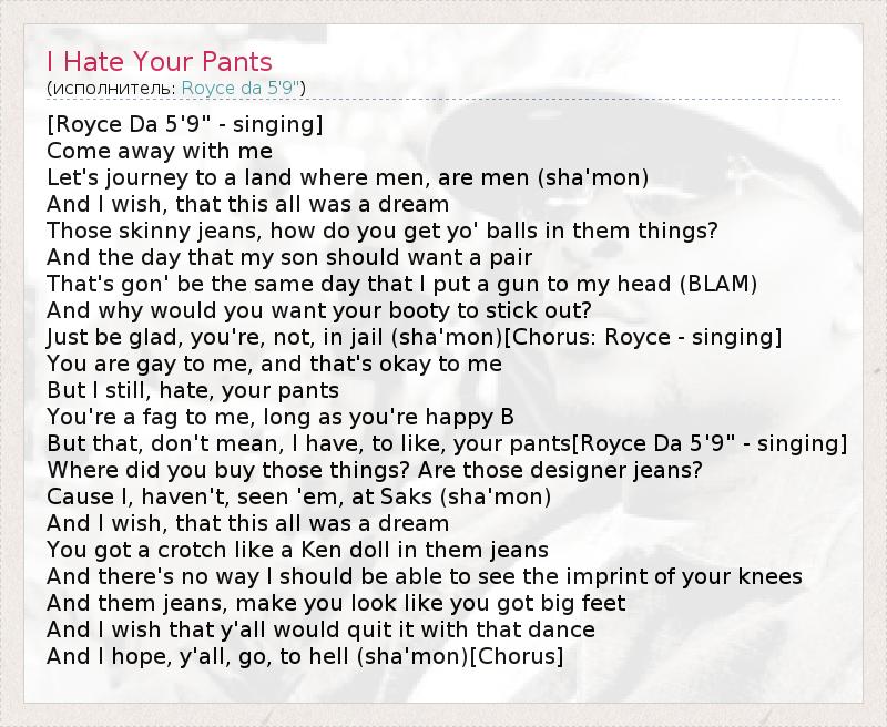 А как ты думаешь, о чем песня "I Hate Your Pants" ?
