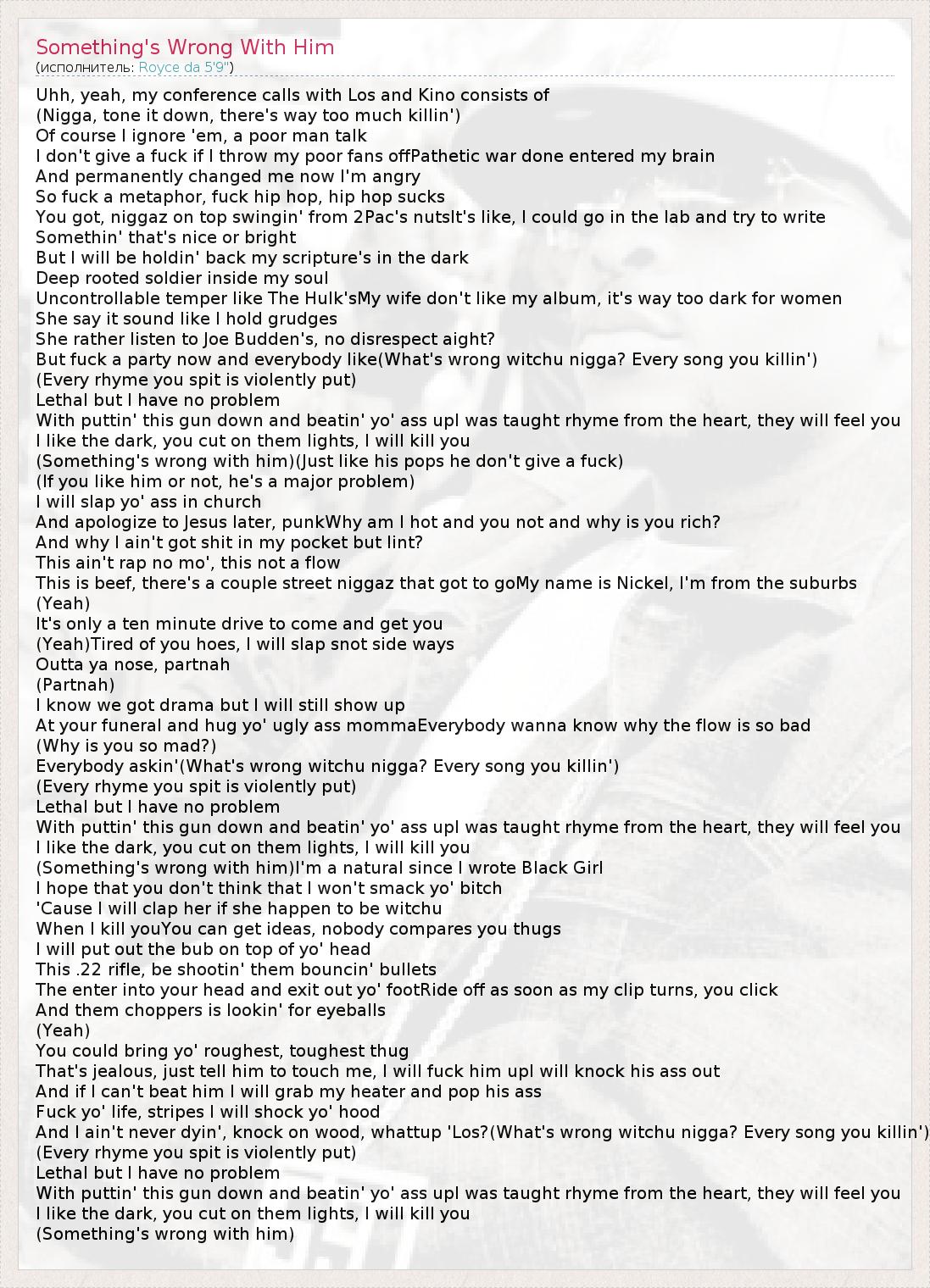 ГлавнаяИсполнителиRoyce da 5'9"Something's Wrong With Him