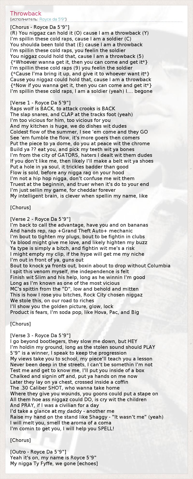 (R) You niggaz can hold it (O) cause I am a throwback (Y)