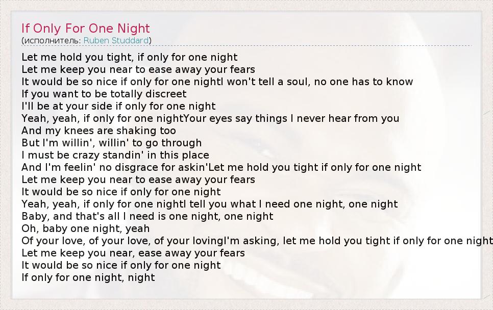 А как ты думаешь, о чем песня "If Only For One Night" ?