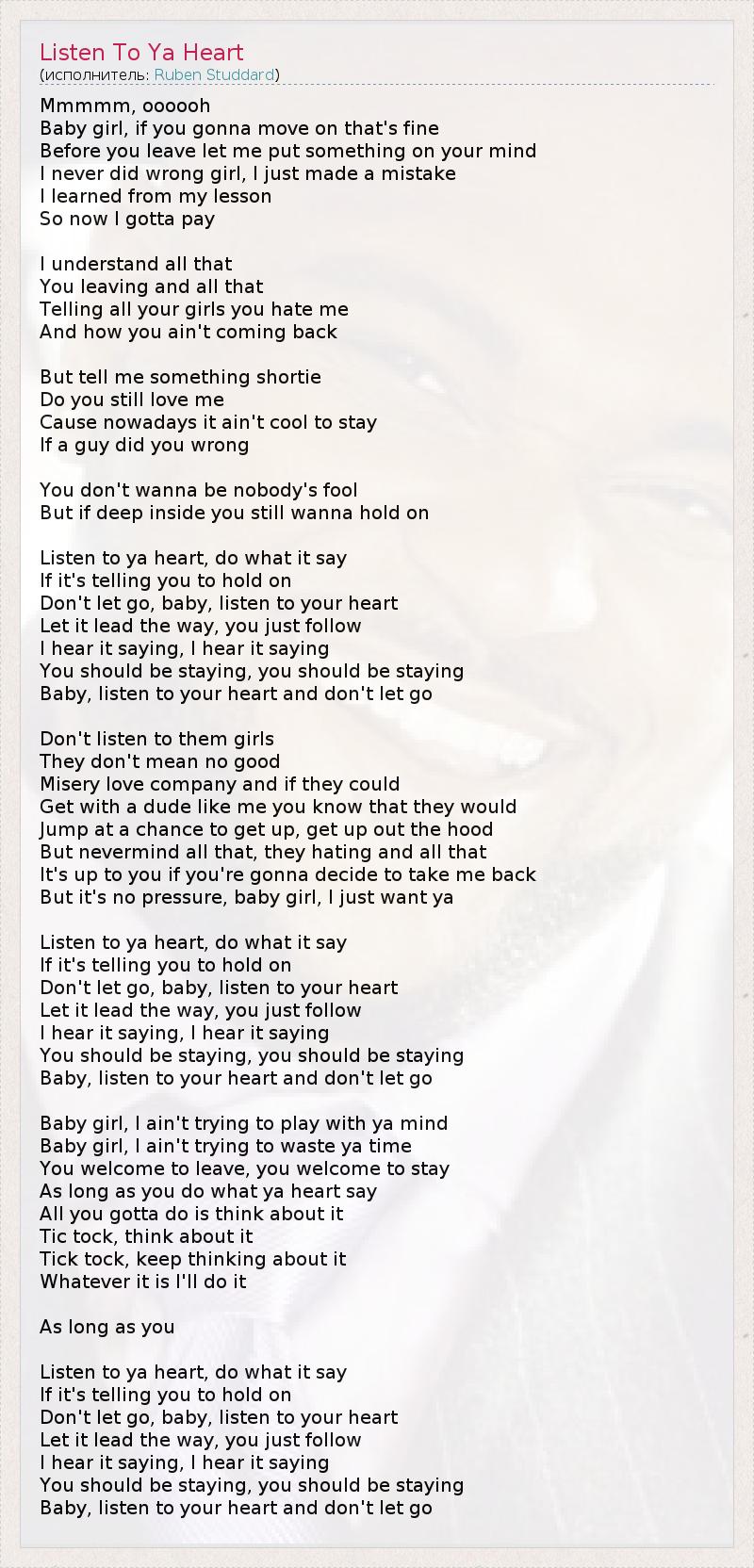 А как ты думаешь, о чем песня "Listen To Ya Heart" ?