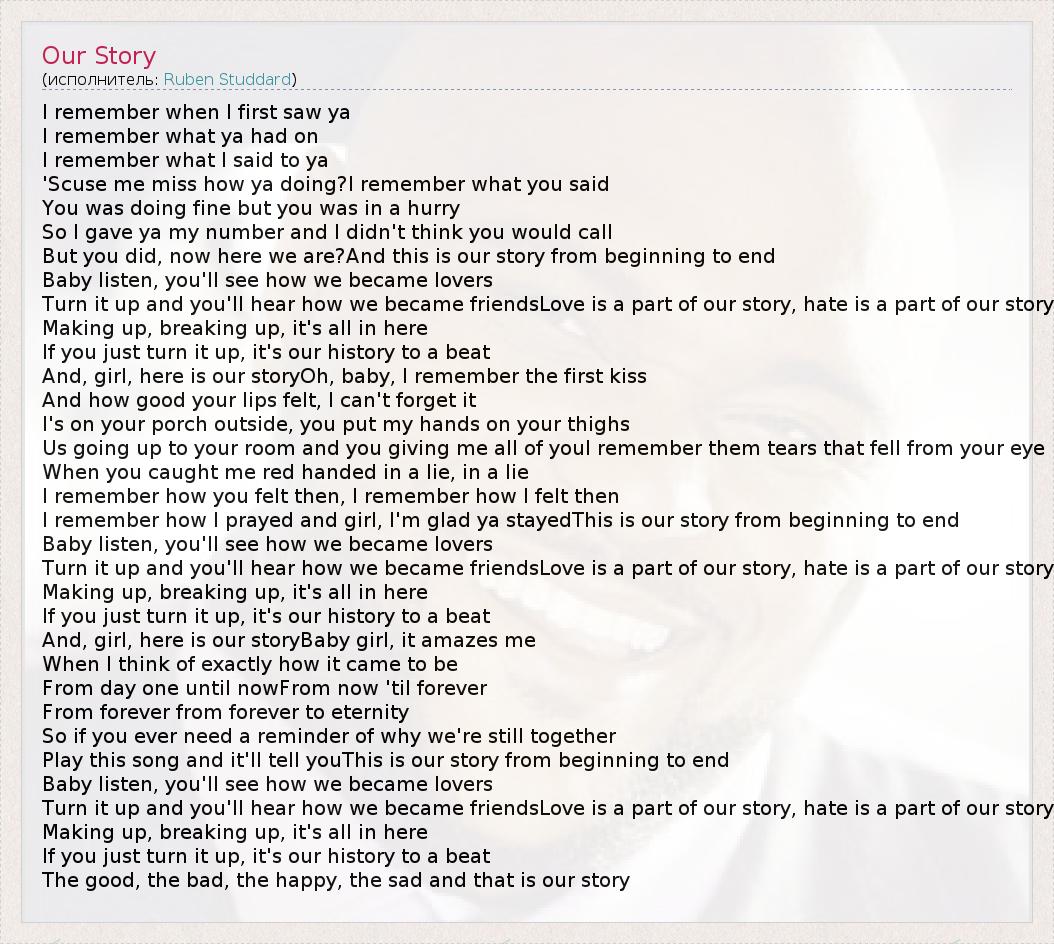 And, girl, here is our storyOh, baby, I remember the first kiss