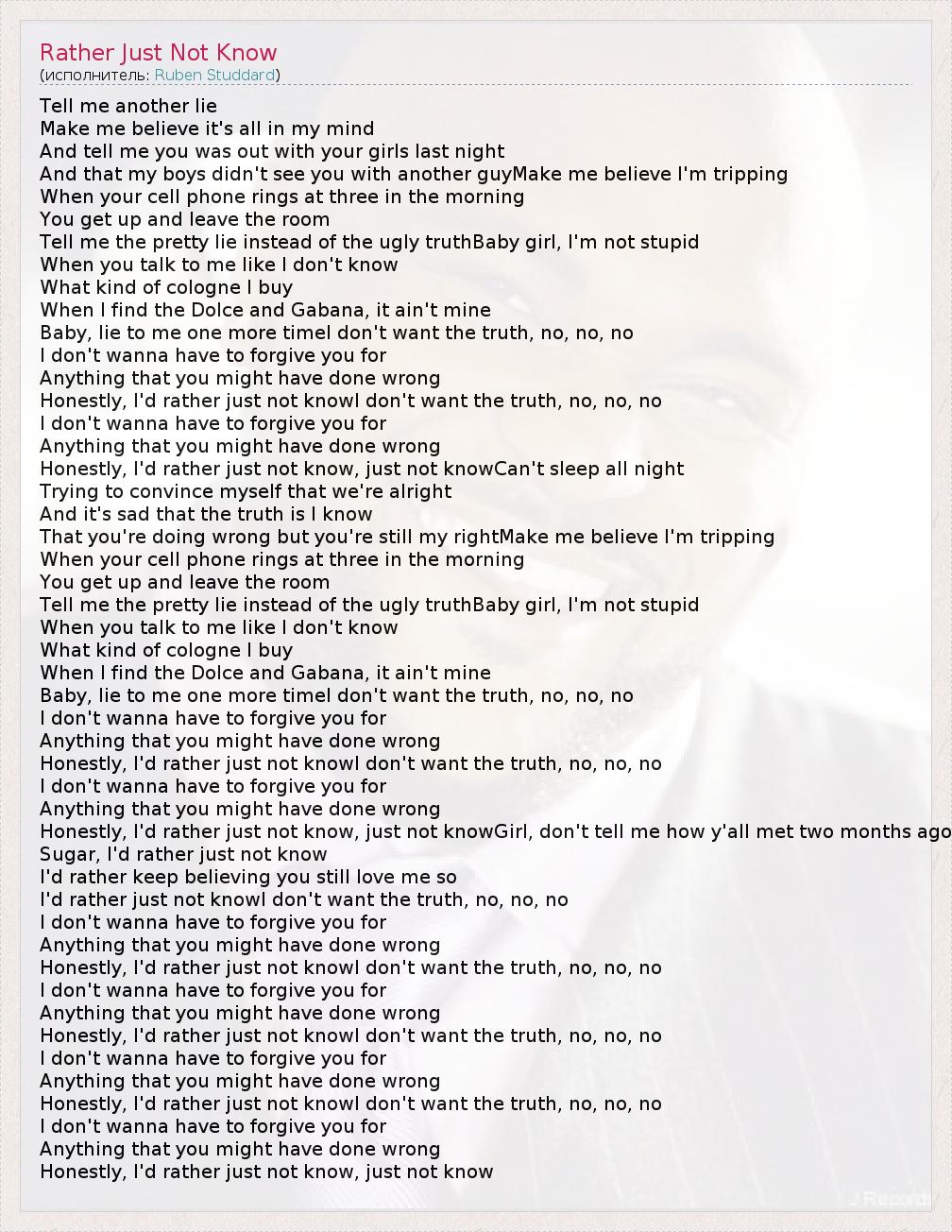 Honestly, I'd rather just not knowI don't want the truth, no, no, no