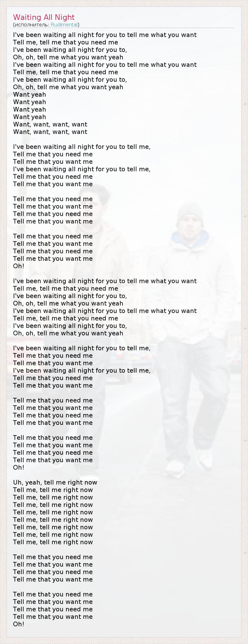 А как ты думаешь, о чем песня "Waiting All Night" ?