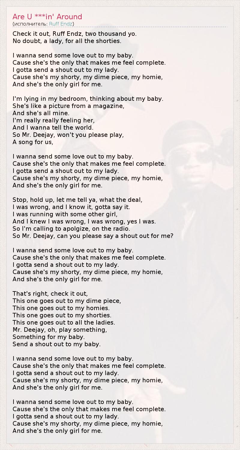 А как ты думаешь, о чем песня "Are U ***in' Around" ?