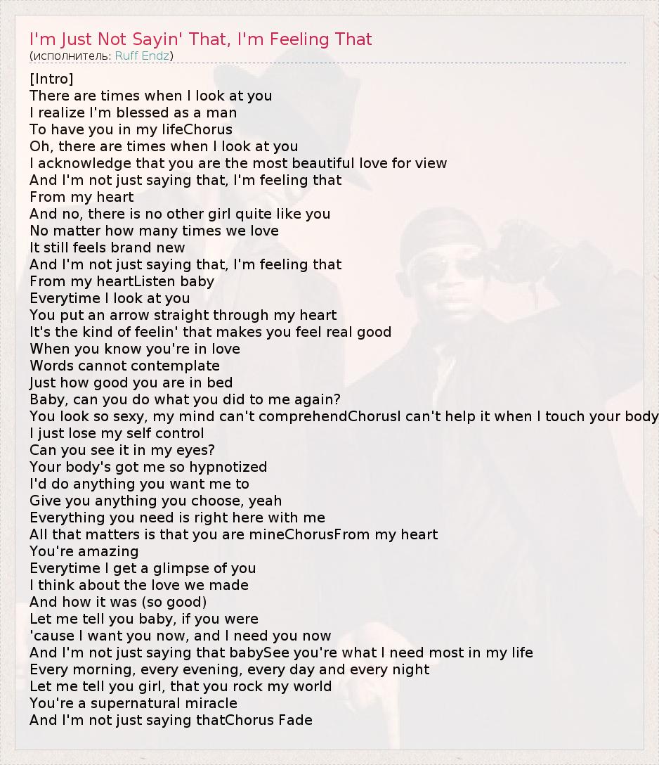 А как ты думаешь, о чем песня "I'm Just Not Sayin' That, I'm Feeling That" ?