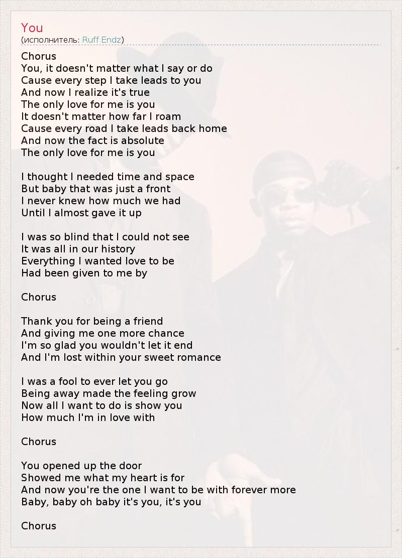 А как ты думаешь, о чем песня "You" ?