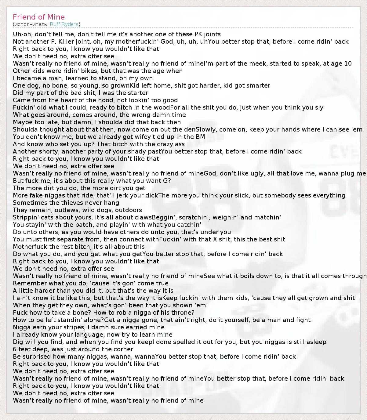 Wasn't really no friend of mine, wasn't really no friend of mineSee what it boils down to, is that it all comes through
