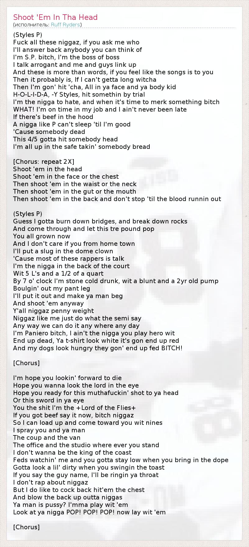 А как ты думаешь, о чем песня "Shoot 'Em In Tha Head" ?