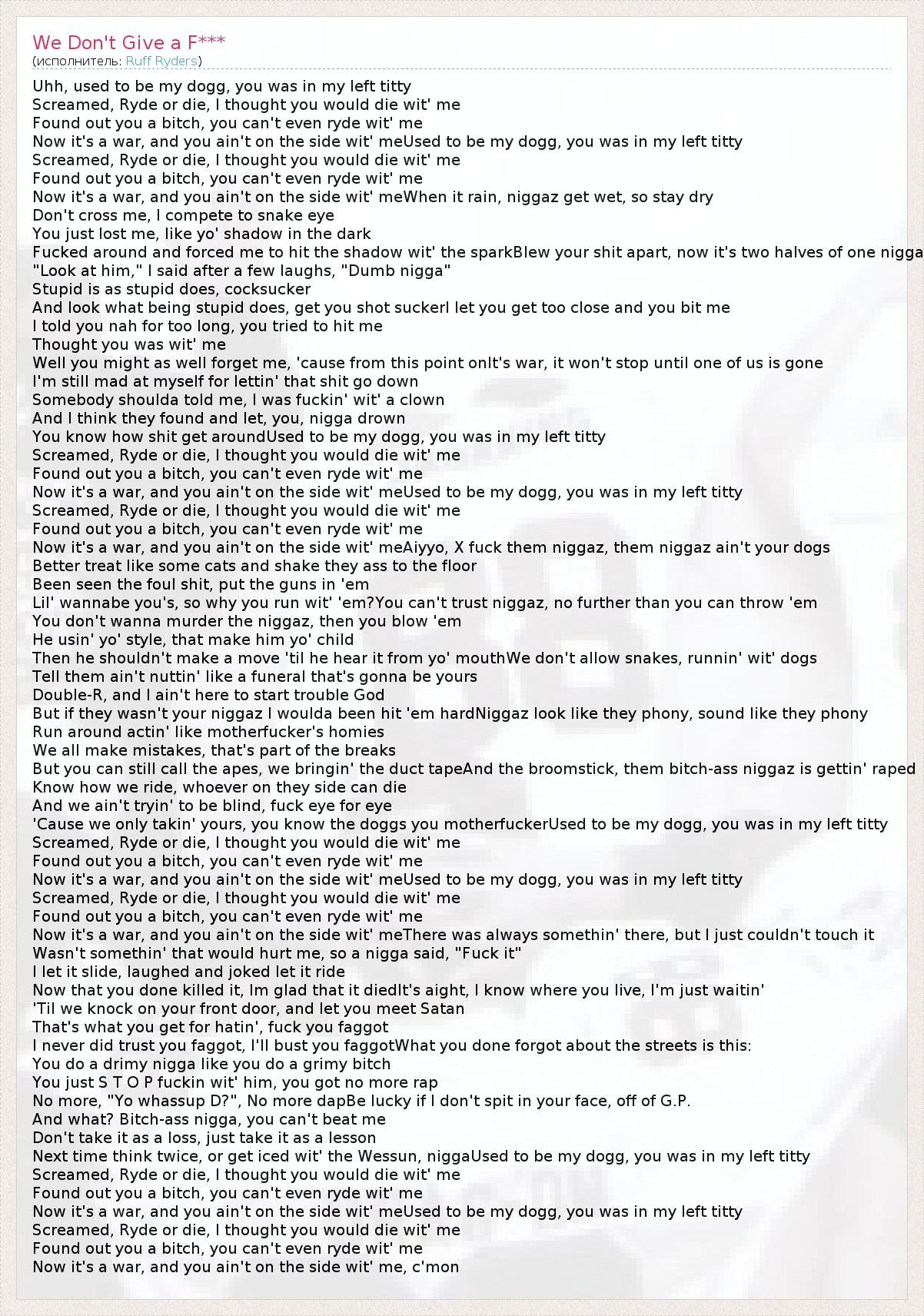 I never did trust you faggot, I'll bust you faggotWhat you done forgot about the streets is this: