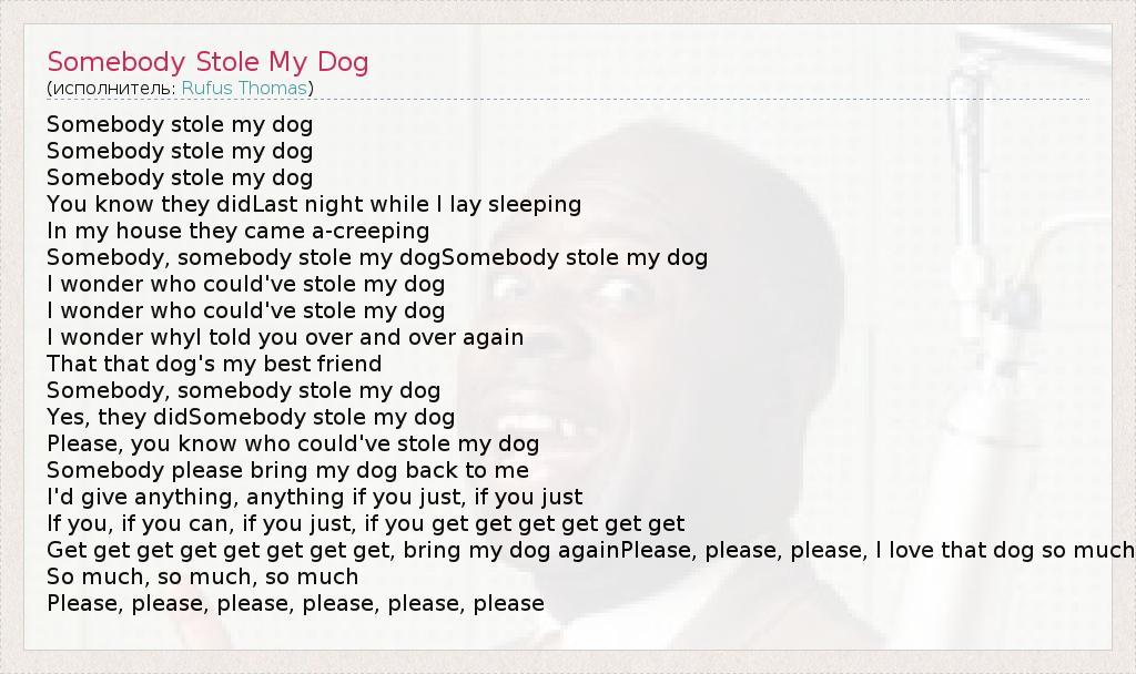 А как ты думаешь, о чем песня "Somebody Stole My Dog" ?