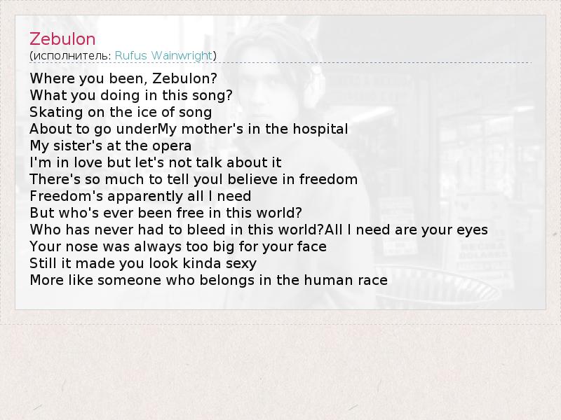 Это интересно:Удивительный канадский музыкант Руфус Уэйнрайт является редким примером ребёнка знаменитостей, успех которого никак не связан с именами родителей. Отец Руфуса, Лоудон Уэйнрайт Третий (Loudon Wainwright III), прямой потомок важной фигуры американской истории Питера Стивисента (Peter Stuyvesant, 1610-1672), был легендой фолк-музыки 60-ых в Канаде, некоторые критики называли его вторым... продолжение