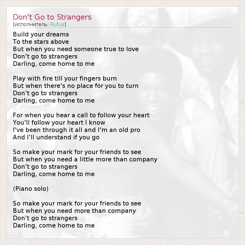 А как ты думаешь, о чем песня "Don't Go to Strangers" ?