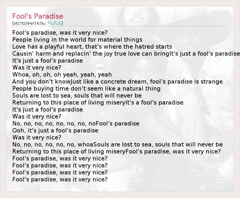 А как ты думаешь, о чем песня "Fool's Paradise" ?
