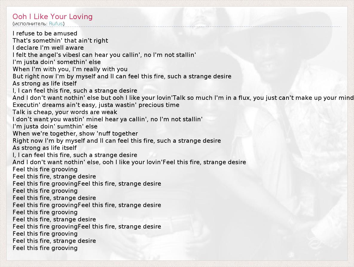 А как ты думаешь, о чем песня "Ooh I Like Your Loving" ?