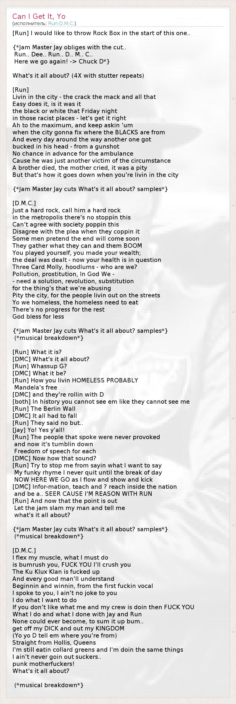 А как ты думаешь, о чем песня "Can I Get It, Yo" ?