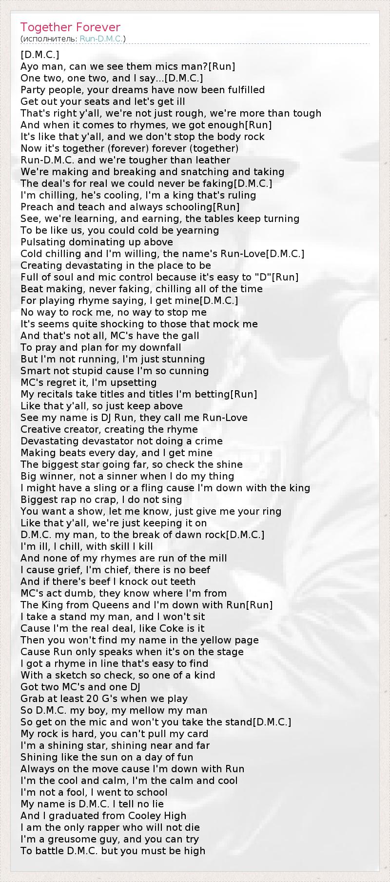 D.M.C. my man, to the break of dawn rock[D.M.C.]
