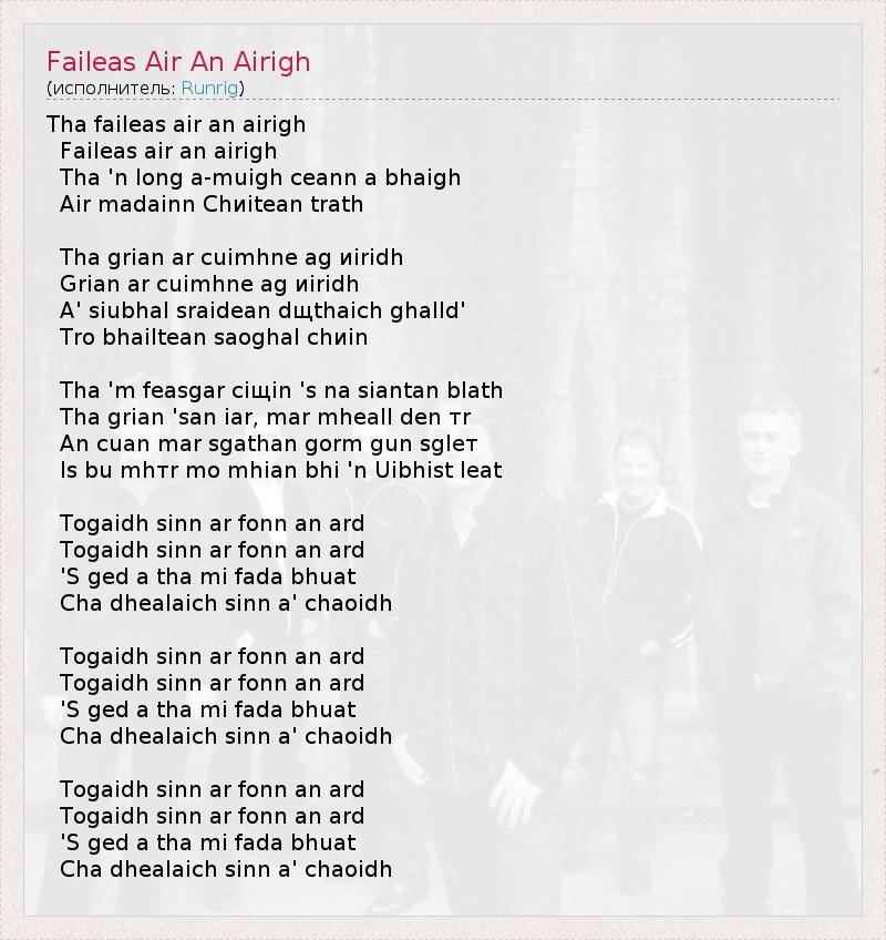 ГлавнаяИсполнителиRunrigFaileas Air An Airigh
