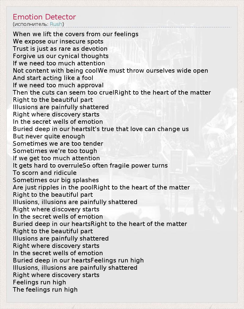 А как ты думаешь, о чем песня "Emotion Detector" ?