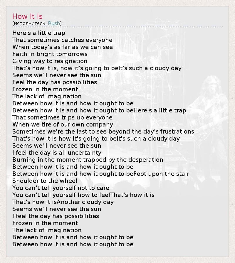 А как ты думаешь, о чем песня "How It Is" ?