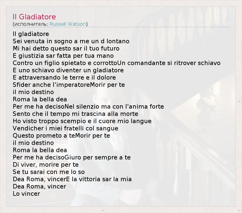 А как ты думаешь, о чем песня "Il Gladiatore" ?