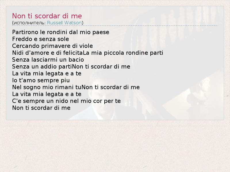 А как ты думаешь, о чем песня "Non ti scordar di me" ?