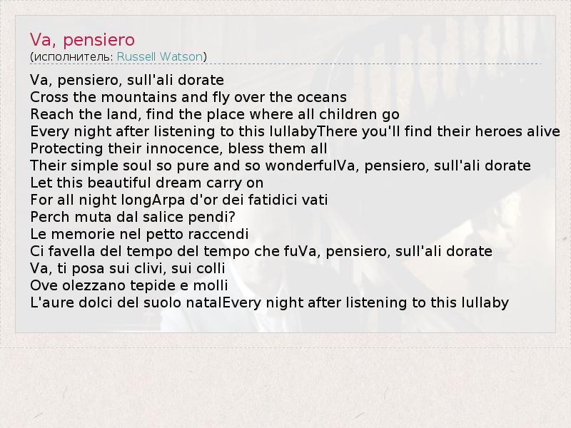 А как ты думаешь, о чем песня "Va, pensiero" ?