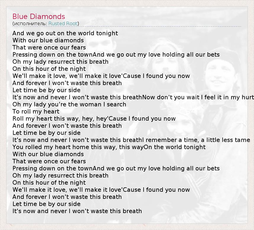 А как ты думаешь, о чем песня "Blue Diamonds" ?