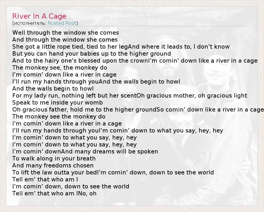 And to the hairy one's blessed upon the crownI'm comin' down like a river in a cage
