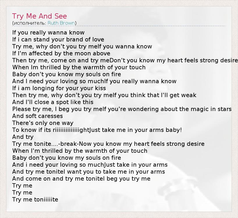 А как ты думаешь, о чем песня "Try Me And See" ?