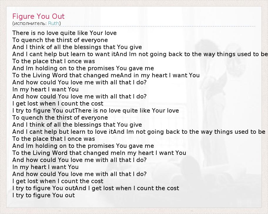 А как ты думаешь, о чем песня "Figure You Out" ?