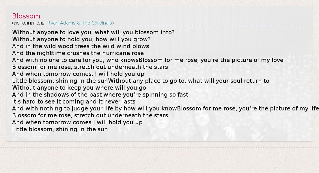 And with no one to care for you, who knowsBlossom for me rose, you're the picture of my love