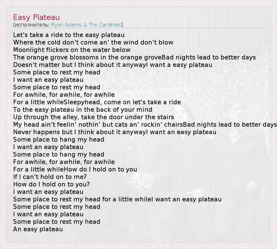 А как ты думаешь, о чем песня "Easy Plateau" ?
