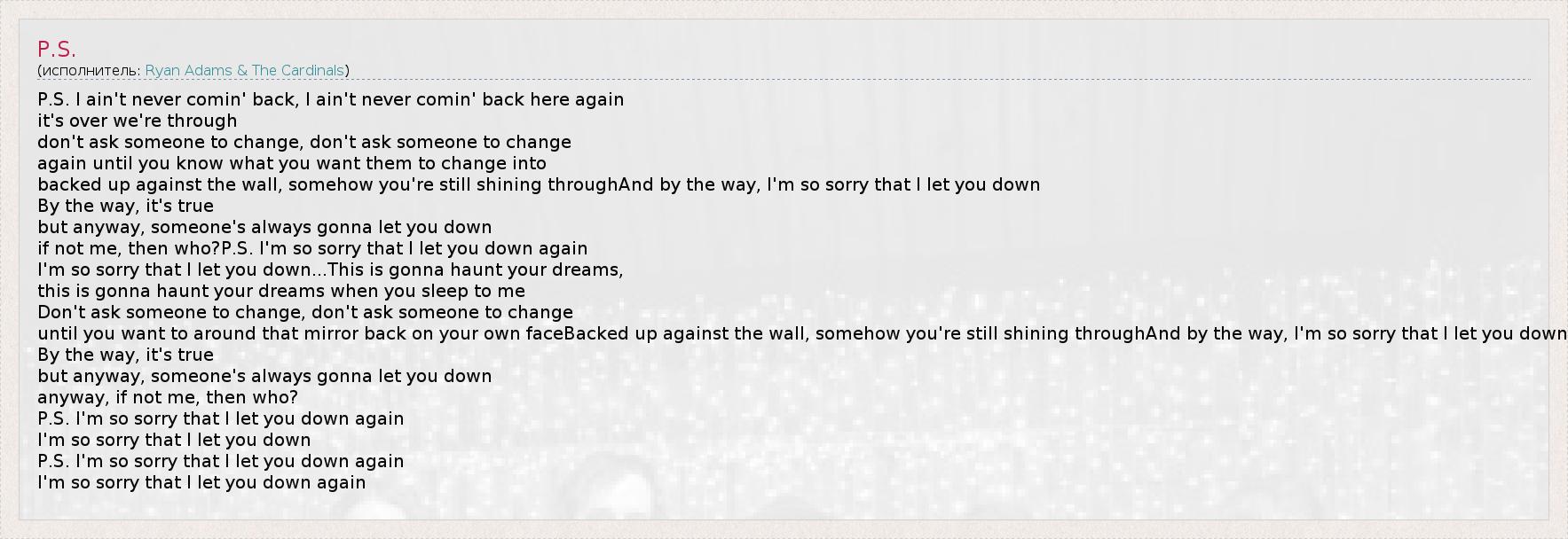 P.S. I ain't never comin' back, I ain't never comin' back here again