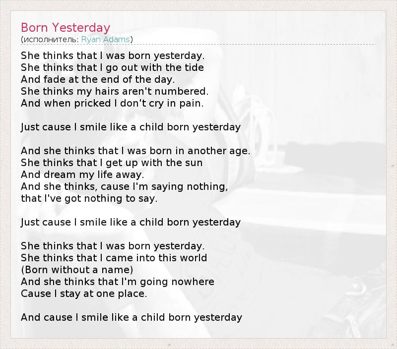 А как ты думаешь, о чем песня "Born Yesterday" ?