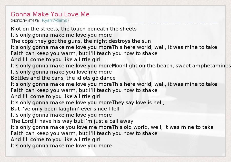 ГлавнаяИсполнителиRyan AdamsGonna Make You Love Me