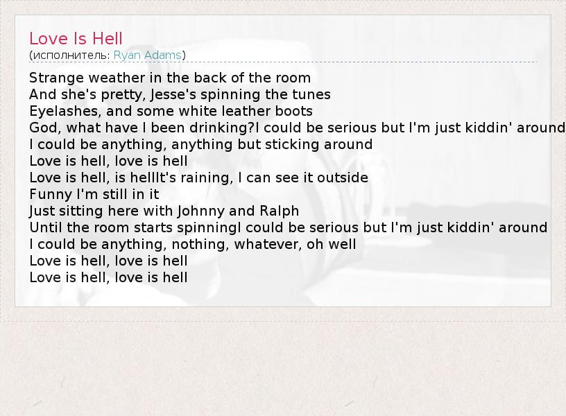 А как ты думаешь, о чем песня "Love Is Hell" ?