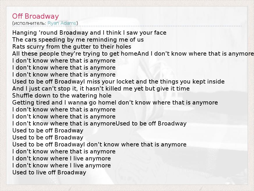 А как ты думаешь, о чем песня "Off Broadway" ?