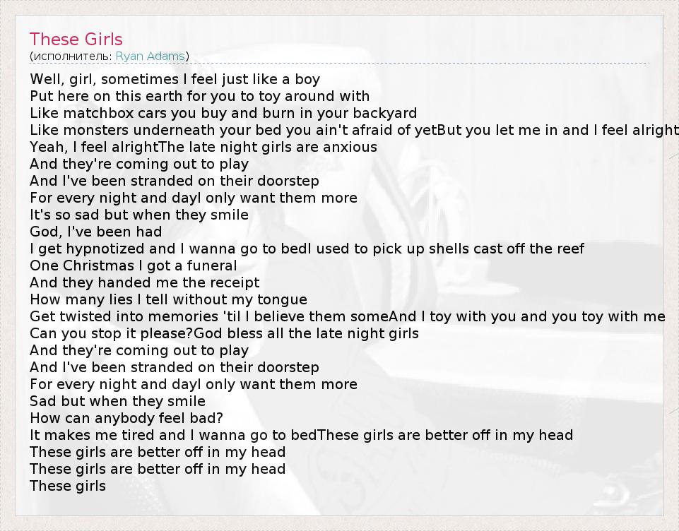 It makes me tired and I wanna go to bedThese girls are better off in my head