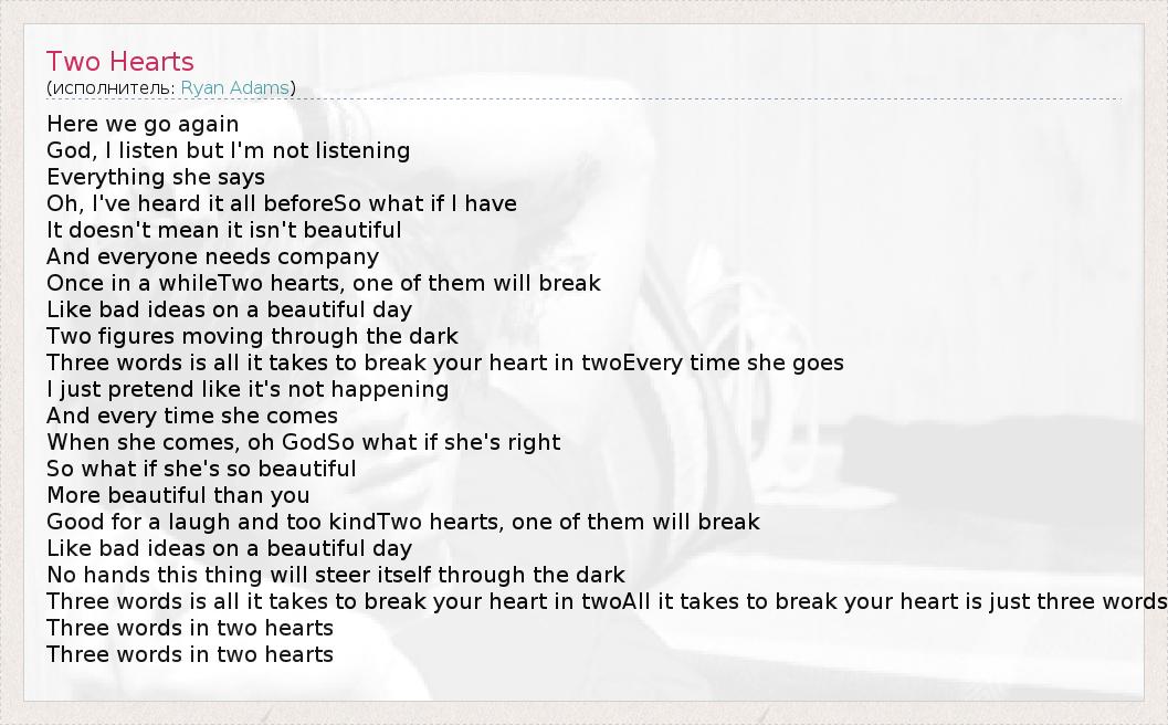 А как ты думаешь, о чем песня "Two Hearts" ?