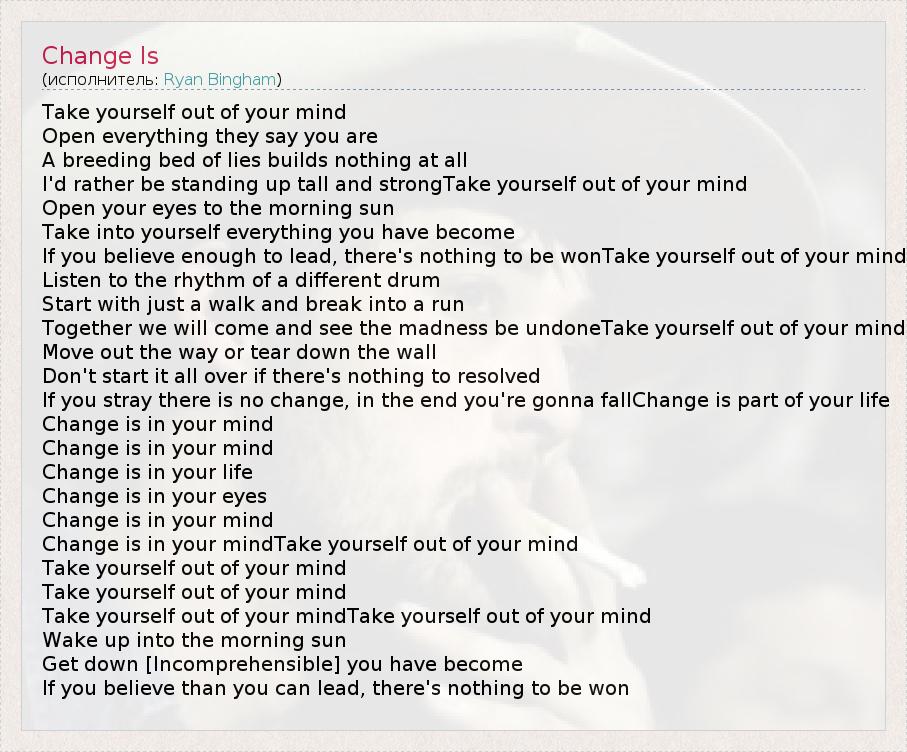 If you stray there is no change, in the end you're gonna fallChange is part of your life