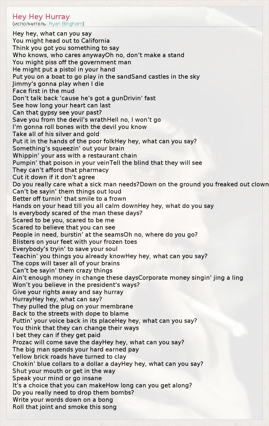 А как ты думаешь, о чем песня "Hey Hey Hurray" ?